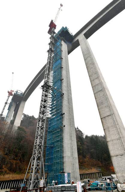 橋脚高が日本一の125メートルで、平成30(2018)年度中に供用を開始する。