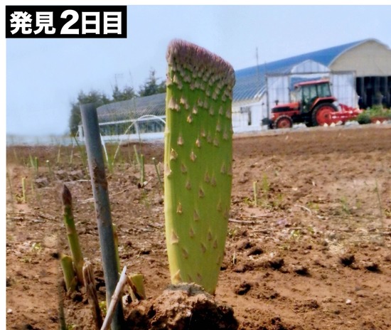 直径20cmくらいの椎茸はよく見るから、このアスパラもアスパラ農家はたまに見るのかもしれない