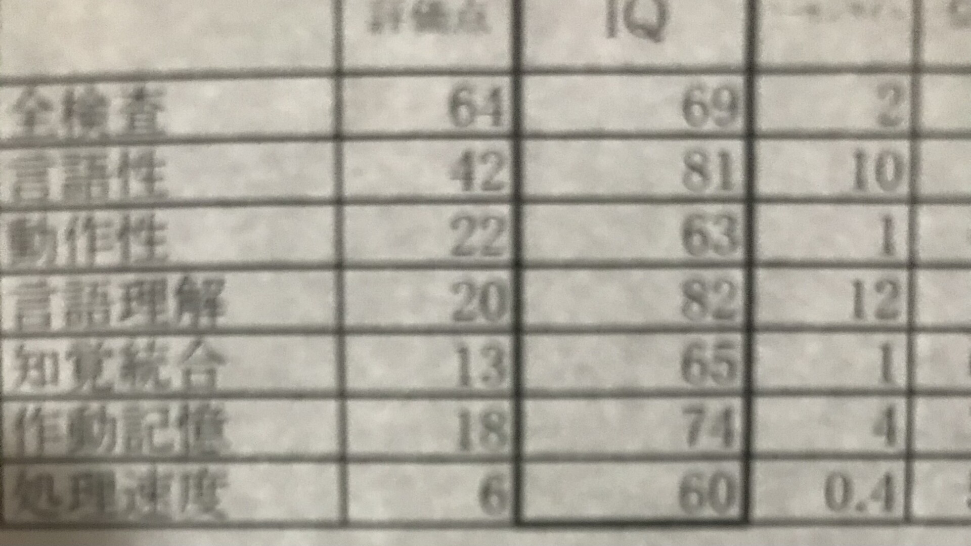 知覚統合64、処理速度80や