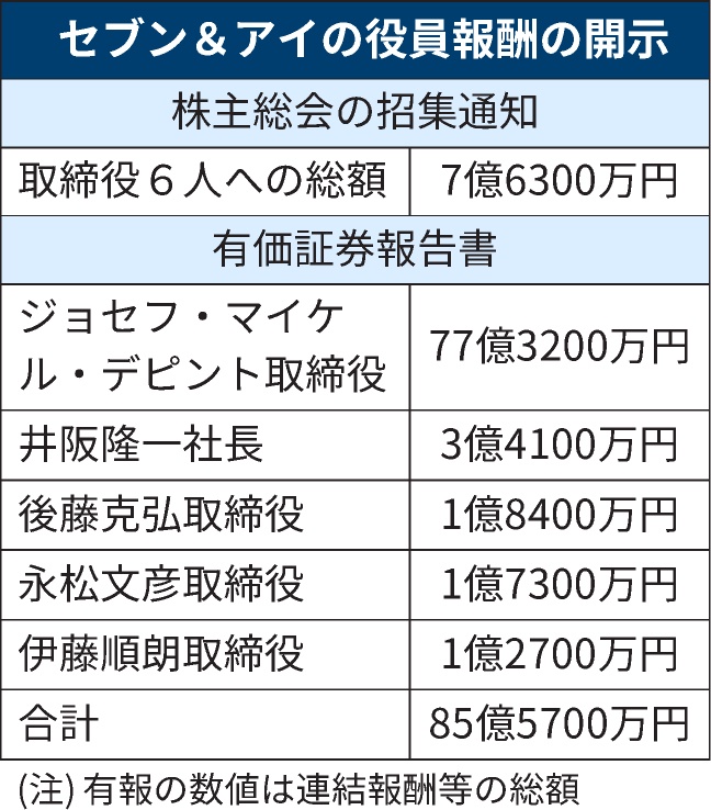 ようわからんけど他の役員の報酬の合計が7億ぐらいでジョセフがその11倍貰ってるからセブンイレブンってこと?