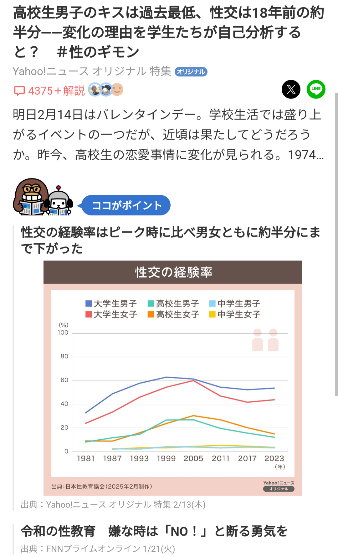 貞操観念が高まってそうなってるわけやないんが問題やね