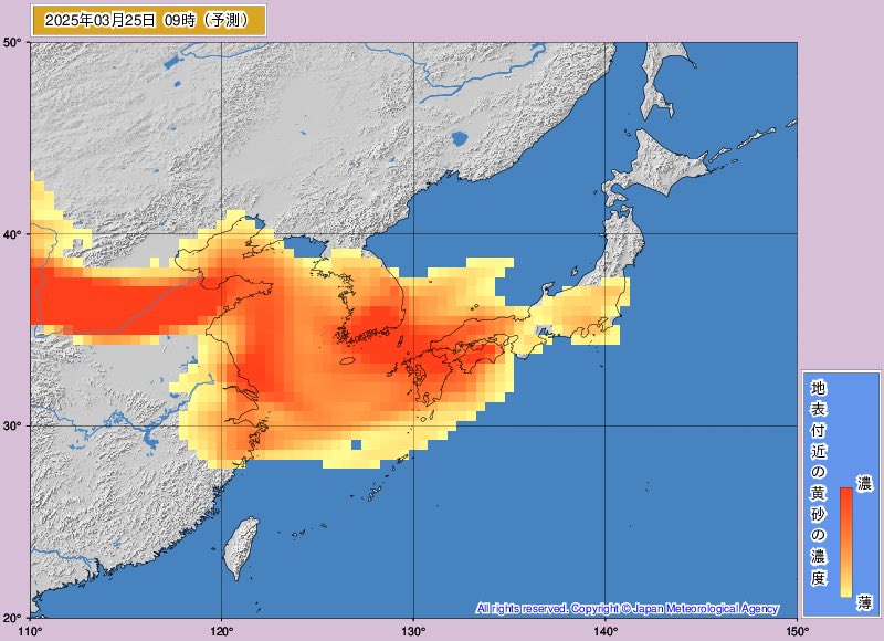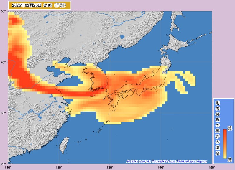 そっちの予報も調べたらええで花粉症で無いのに昨日今日あたりで目が痛かったらこれが原因の可能性あるで