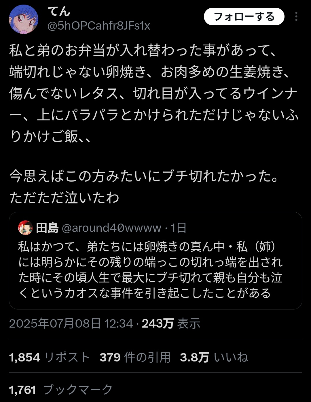 だからって毎日毎日卵焼きの端入れられることは無いやろ