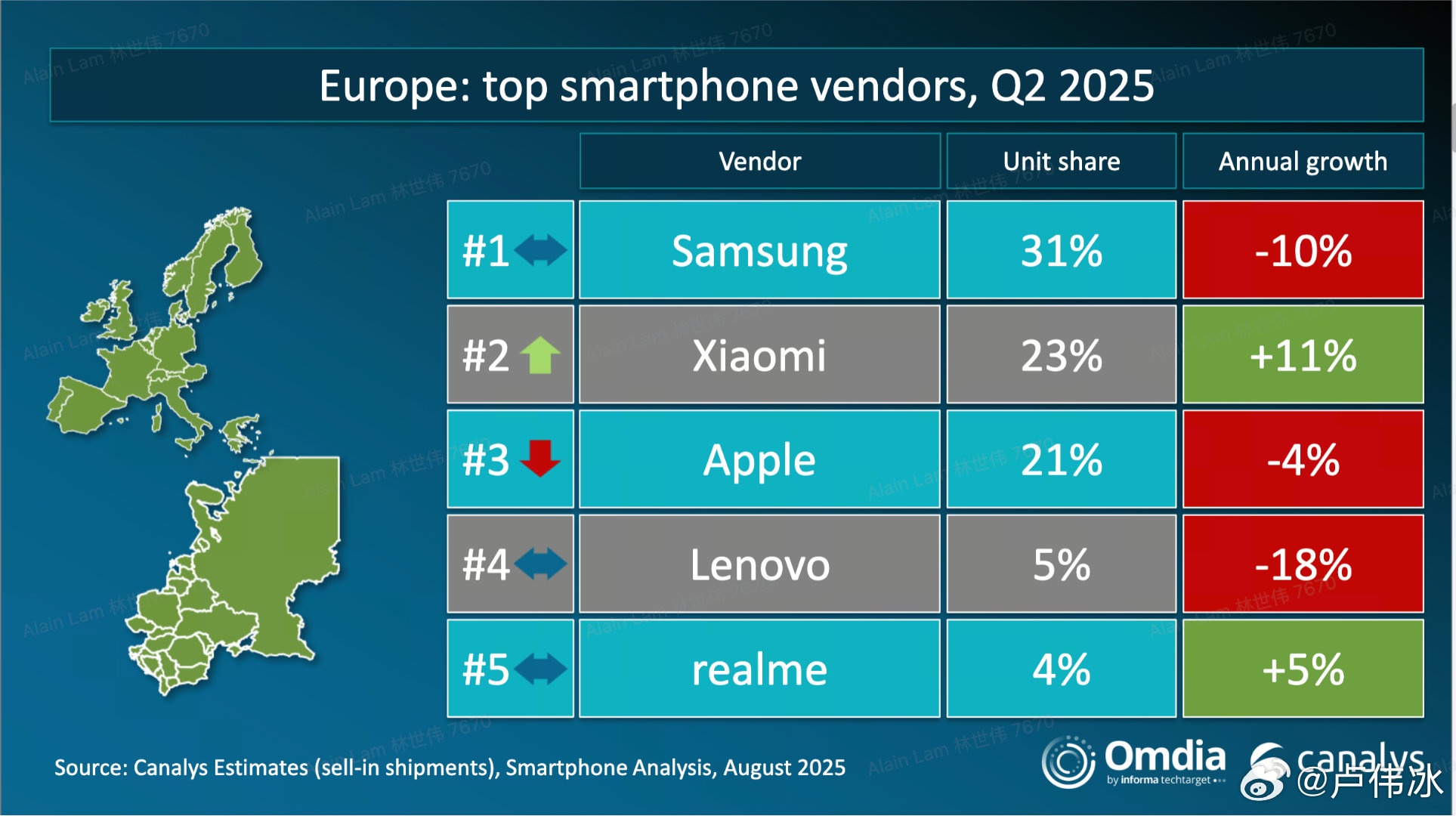 ヨーロッパはGalaxyが1位なんか