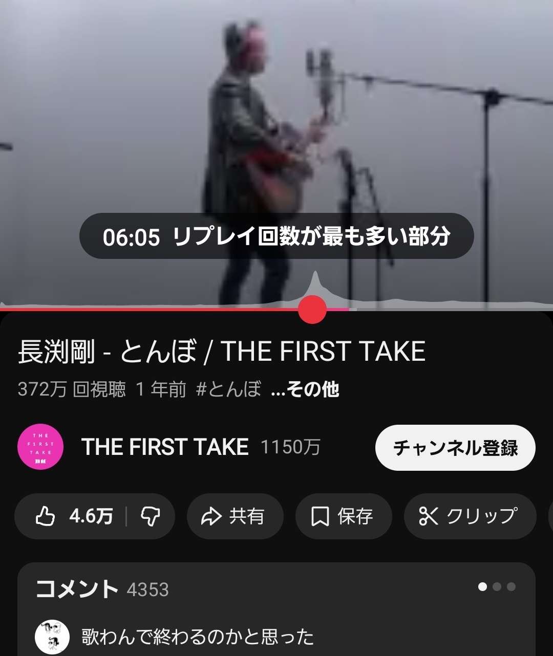 ファーストテイクでとんぼ歌ったけどさ、動画やけに長いんよ