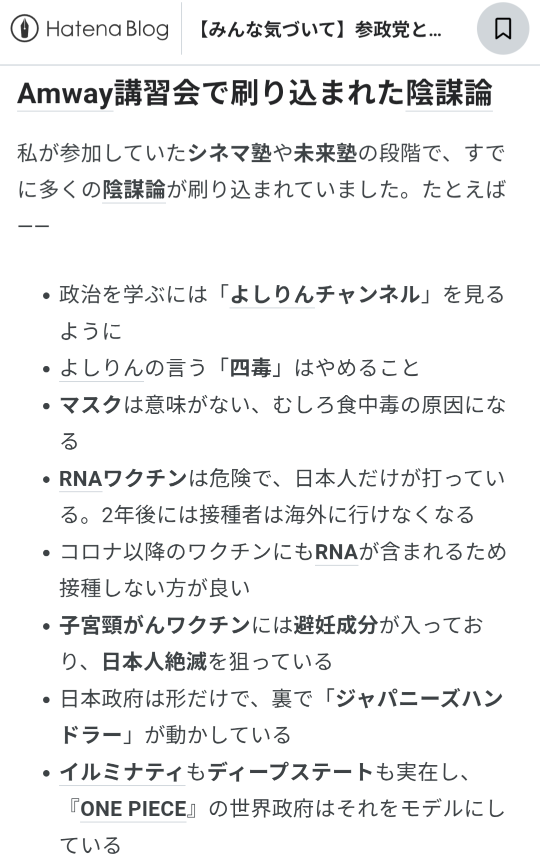 まぁこれは参政党支持者のアムウェイ会員がやってるだけやし