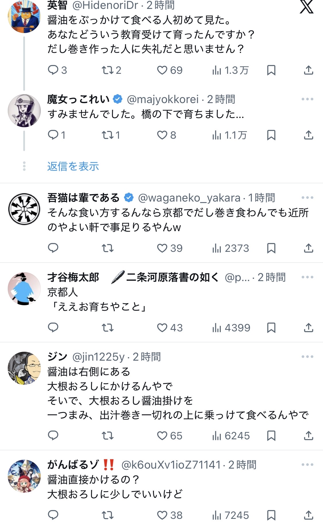 うまいならそんなにしょうゆかけるなよ