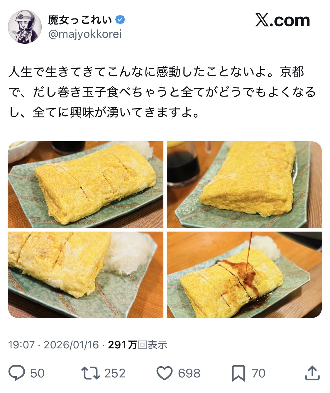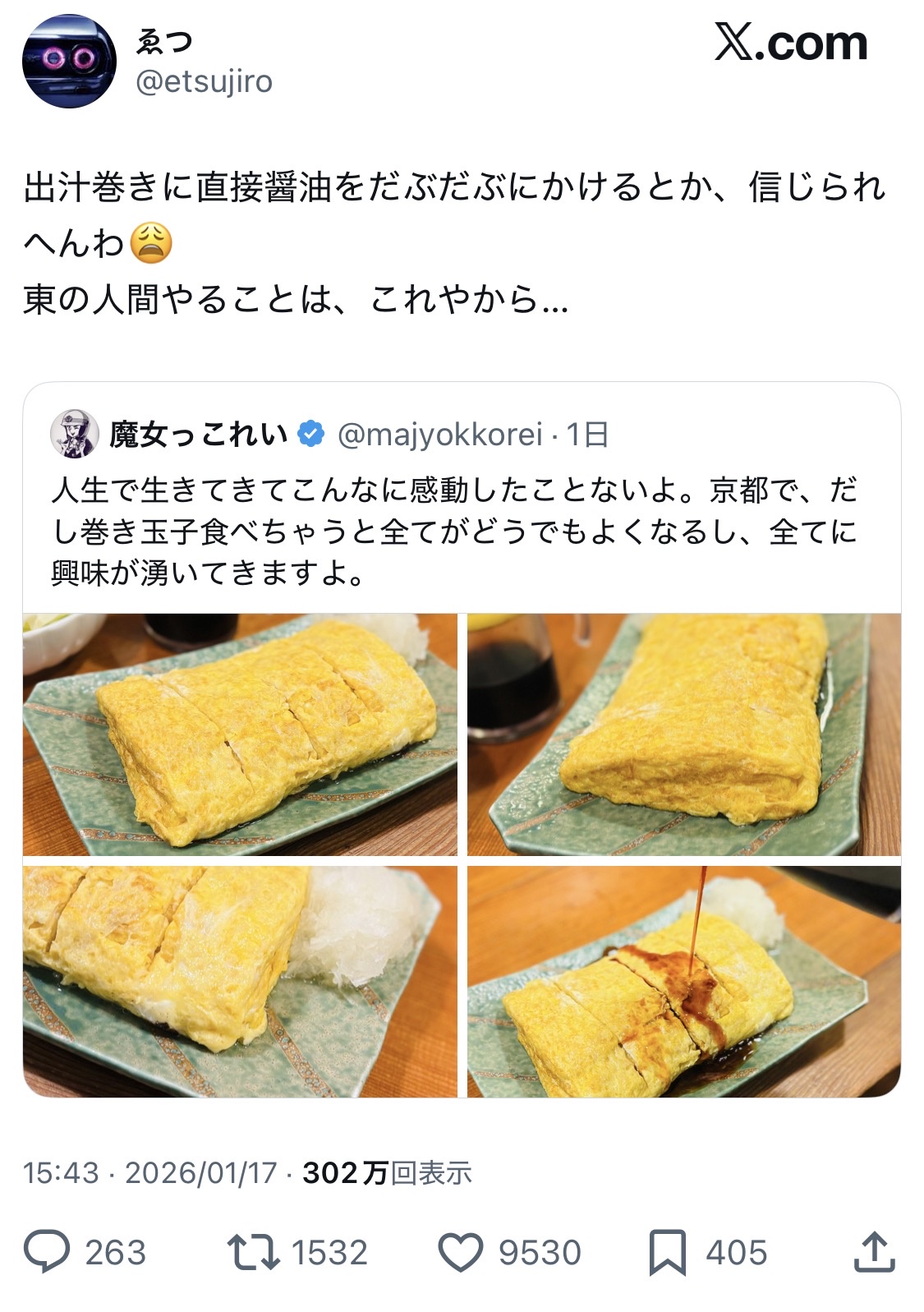 反論されて、これは山芋入りのだし巻きだから醤油かけたんです!