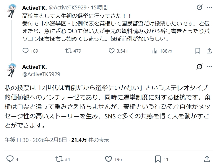 「小選挙区・比例代表を棄権して国民審査だけ投票します」キリッ