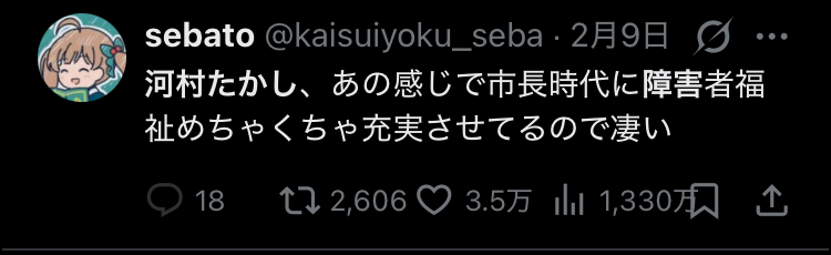 障碍者とか老人に金ばら撒く政治家はダメだと思ってる
