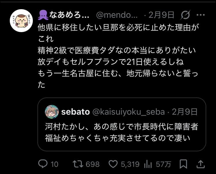 名古屋市は精神2級手帳で医療費無料なのは有名やろ