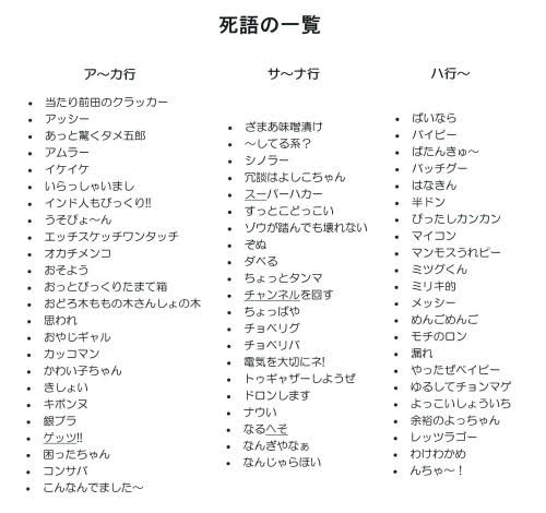 当時は全国で流行ってたけど、今はその事を誰も知らないからまさに死語