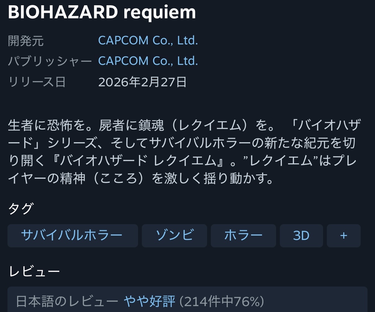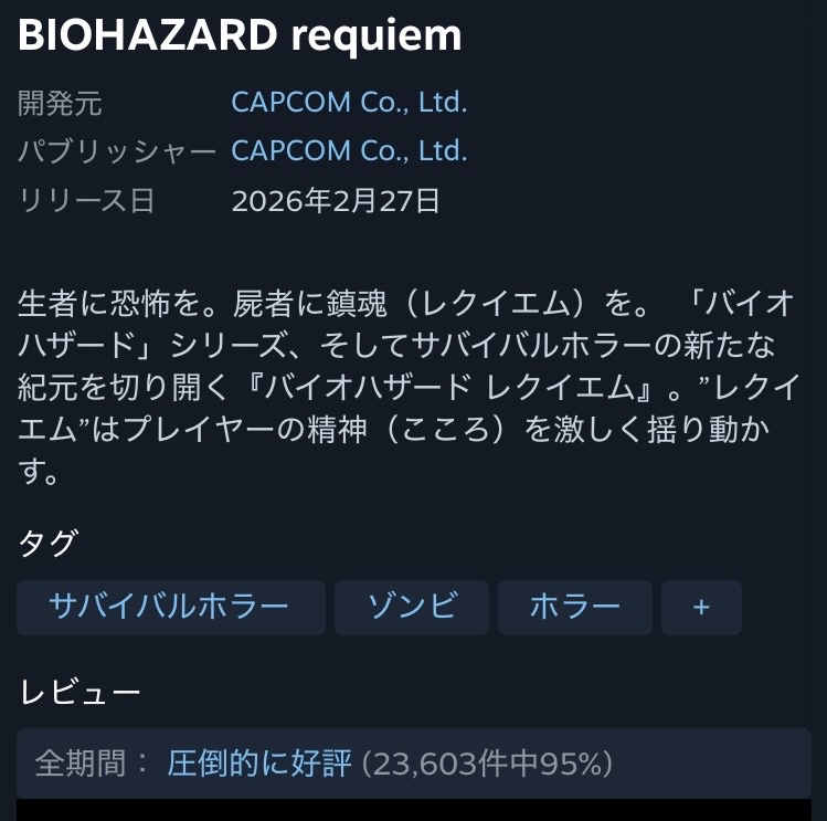 一部にしか知られてない弱小ゲームやユーザーが先鋭化してる信者ゲーで好評はよく見るけどバイオクラスのタイトルで圧倒的好評はさすがに凄いわ